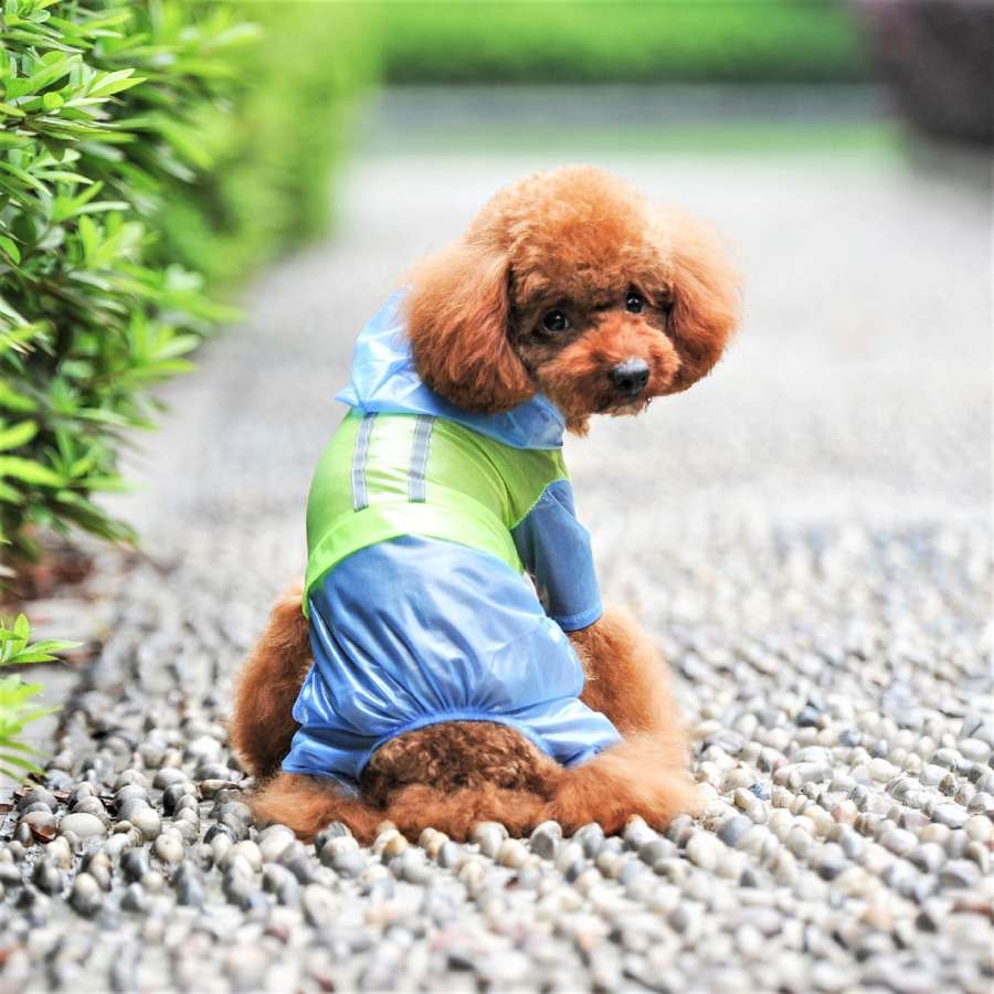 ওভারঅল: ভাল মানের পিউ প্লাস্টিক দিয়ে তৈরি এই রেনকোট পোষ্যের গোটা শরীর ঢেকে রাখবে। বাইরে থাকবে শুধু তাদের থাবা এবং লেজ। বুকের কাছে বোতাম দিয়ে আটকানো এই বর্ষাতি দেখতে অনেকটা বর্ষায় কর্মরত ট্র্যাফিক পুলিশদের বর্ষাতির মতো। ‘কেতাদুরস্ত এবং ওজনদার’— নিঃসন্দেহে।