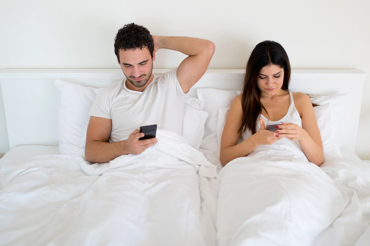 আমেরিকার বিভিন্ন প্রদেশ থেকে প্রায় ২ হাজার দম্পতির উপর সমীক্ষা চালালে দেখা যায়, তাদের প্রায় তিন-চতুর্থাংশই একান্ত নিজস্ব সময়ও রতিক্রীড়ার চেয়ে বেশি ব্যস্ত থাকেন মোবাইল ফোনে। শুধু তা-ই নয়, নারী-পুরুষ নির্বিশেষ অধিকাংশের দাবি, ঘুমোতে যাওয়ার আগে তাঁদের প্রেমিক বা জীবনসঙ্গীর মুখ নয়, মোবাইল দেখেই চোখ বোজেন তাঁরা। এমনকি, এঁদের কারও কারও একই বাড়িতে থেকেও পরস্পরের সঙ্গে যোগাযোগের মাধ্যম হয়ে উঠছে সাধের স্মার্টফোনটি। প্রয়োজনীয় কথা বা তথ্য চালান হচ্ছে সোশ্যাল সাইটের মাধ্যমেই!