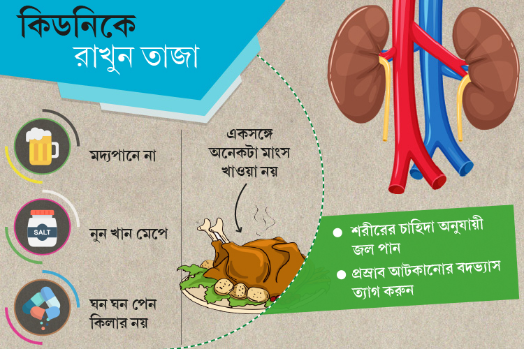 আধুনিক জীবনযাত্রা ও পরিবর্তিত খাদ্যাভ্যাস আমাদের সুশৃঙ্খল জীবন কাটাতে অনেক সময়েই বাধা দেয়। ফলে অভ্যন্তরীণ ক্ষতি ঘটতেই থাকে নিরন্তর। যেমন কিডনি আমাদের অত্যন্ত গুরুত্বপূর্ণ অঙ্গ হলেও প্রতি দিনের বেশ কিছু সাধারণ ভুলে এই অঙ্গের ক্ষতি হয় নানা ভাবে। অনেক সময়ই আমরা যে সব ভুল করি, তা পরবর্তীকালে কঠিন রোগের আকার নেয়। ফলে প্রথম থেকেই নিয়ম মেনে চলা খুব দরকারি।