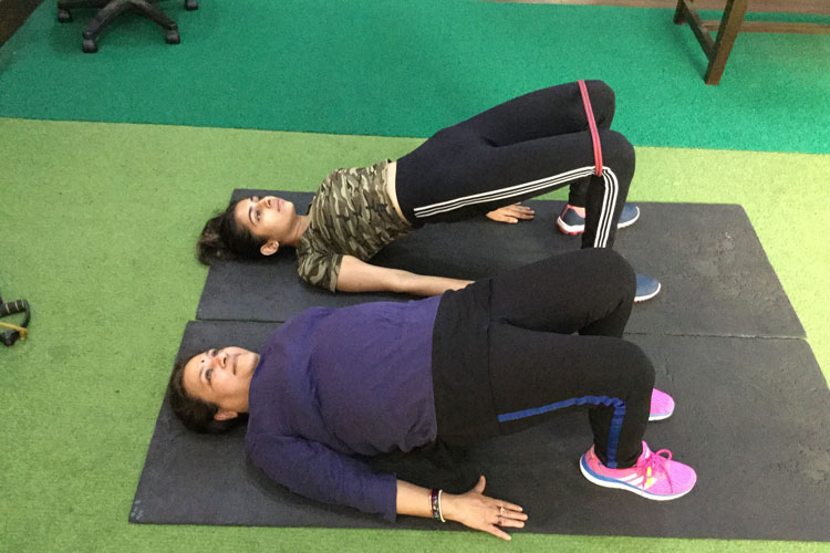 ব্রিজ: বিছানা বা মাটিতে চিত হয়ে শুয়ে পড়ুন। ব্যান্ডটা দুই হাঁটুর কাছে লাগিয়ে পা ভাঁজ করুন। ব্যথা থাকলে কোমর তুলে ব্যান্ডের টান বজায় রেখে কোমর ২০-৩০ সেকেন্ড শূন্যে ধরে থাকুন। ব্যথা কম থাকলে ব্রিজটা তুলুন আর মাটিতে নামান। মোট ১২ বার। হামস্ট্রিংয়ের জোরে বাড়ে এতে।