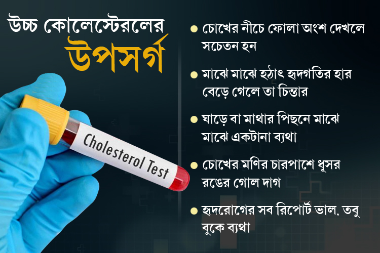 কিন্তু চিকিৎসকদের মতে, এই অসুখের প্রবণতা আপনার আছে কি না, বা ইতিমধ্যেই আপনার রক্তে কোলেস্টেরলের মাত্রা বেড়ে গিয়েছে কি না তা বুঝতে সব সময় রক্তপরীক্ষা পর্যন্ত অপেক্ষা করার প্রয়োজন হয় না। বরং কিছু উপসর্গ দেখলে বোঝা যায় শরীরে এই রোগ বাসা বেঁধেছে কি না।