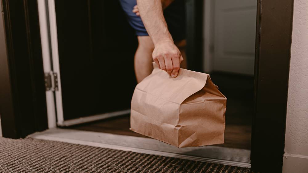 দরজার বাইরে ঢাকা দেওয়া খাবার রাখতে হবে করোনা আক্রান্তের জন্য। —শাটারস্টক।
