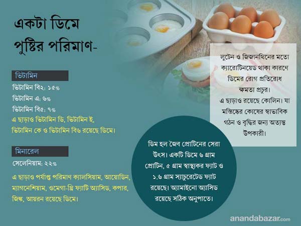 ডিম। প্রায় সব রকম ভিটামিন ও মিনারেল রয়েছে ডিমে।