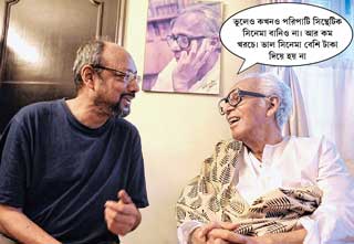 মৃণালদা: মানিকবাবু আমাকে বলেছিলেন, একটা গোটা স্ক্রিপ্ট ছাড়া কী করে ছবি বানান আপনি? আমি বলেছিলাম, ‘হয়ে যায়।’ ঘর, দোর, অভিনেতা, অভিনেত্রী, আলো, ক্যামেরা, সব একত্র হলে একটা এনার্জির জন্ম নেয়। শ্রীলা, গীতা ... নিজেদের মতো করে সিন-এর সংলাপ বলত... আমি শুনতাম... দেখতাম... টুকরো টুকরো করে শু্যট করে নিতাম। এ ভাবেই হয়। সিনেমা আমাদের ভেতরেই আছে। রোজকার জীবনের মতো সিনেমা নিয়ে আমরা ঘুরেছি, বেঁচেছি। তুমি এ ভাবে বানাও না এখন?