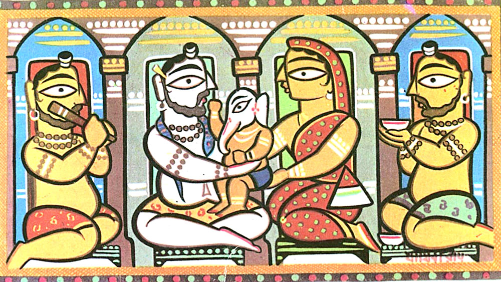 অন্তত এ বার যামিনীবাবুর দুই ছেলের সংক্ষিপ্ততম কথা জানাতে হয়, যেহেতু দু’জনেই ছবি আঁকতে জানতেন। জীমূত ওরফে ‘বোতল’ খুব কম বয়সে মারা যান। এই অকালমৃত্যু শিল্পী মেনে নিতে পারেননি। ভয়ঙ্কর আঘাত ছিল তাঁর কাছে বোতলের অকস্মাৎ চলে যাওয়া। ধর্ম আর জীমূতকে বাগবাজারে তিনি দোকানও করে দিয়েছিলেন। শুধু ছবি বিক্রির উপরে ভরসা ছিল না বলেই কি? জ্যেষ্ঠপুত্র ধর্ম দোকান মেনে নিলেও জীমূত পারেননি। সেনসিটিভ জীমূতের প্রতি ওঁর যে আরও নজর দেওয়া উচিত ছিল, যামিনীবাবু বুঝেছিলেন সে কথা। জীমূত চাপা স্বভাবের একটু বিষণ্ণ ধরনের ছিলেন।