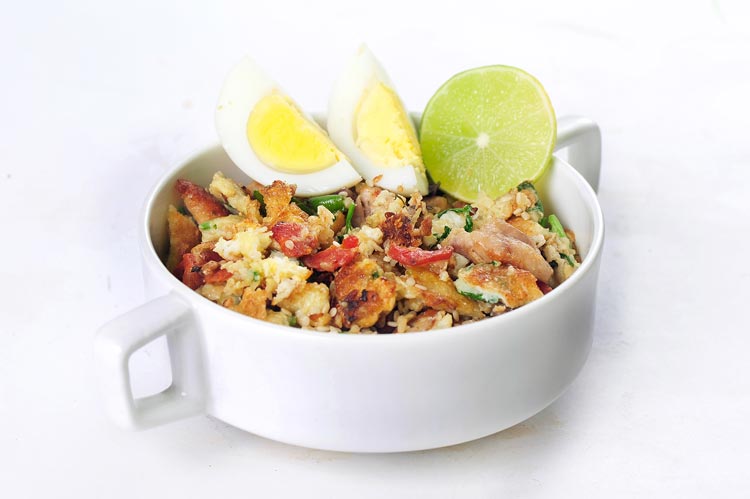 উপকরণ: সাদা তিল ১/৪ কাপ, ডিম ৪টি, হাড়ছাড়া মুরগির মাংস ১ কাপ, গাজর কুচি আধ কাপ, ফ্রেঞ্চ বিন আধ কাপ, কাঁচা লঙ্কা কুচি ২ চা চামচ, ধনে পাতা কুচি অল্প, স্প্রিং অনিয়ন এক মুঠো, পাতিলেবু ১টি, চাট মশলা ১ চা চামচ, নুন স্বাদ মতো, তিলের তেল ভাজার জন্য।