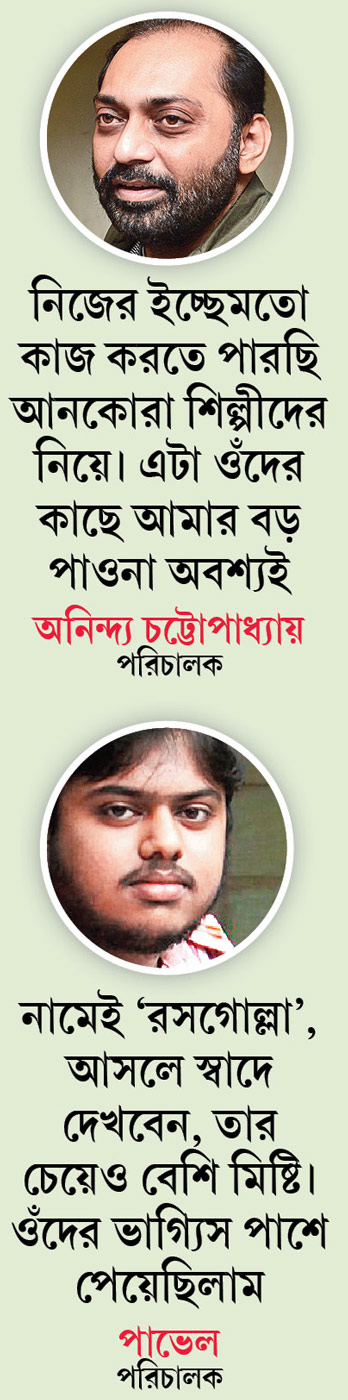 শিবপ্রসাদ: সাধারণত কোনও নতুন পরিচালক ইন্ডাস্ট্রিতে যখন ছবি করতে আসেন, তখন তাঁকে সবচেয়ে কম বাজেটের ছবি করতে বলা হয়। পাভেলের ছবির যা বাজেট, সেই পরিমাণ বাজেট আমাদের নিজেদের ছবিতেও ছিল না। ‘রসগোল্লা’ একটা পিরিয়ড পিস। সেই মতো ভেবে নীতিশ রায়কে প্রোডাকশন ডিজাইন করতে বলেছি। নতুনদের এ ভাবেই এন্ট্রি দিতে হবে।