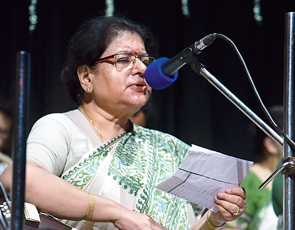 সমবেত সঙ্গীতের মধ্যে উল্লেখযোগ্য ‘ওই আসে ওই অতি ভৈরব হরষে’, ‘হৃদয় মন্দ্রিল ডমরু’, ‘নীল অঞ্জন ঘন’ প্রমুখ। সোমা রায়ের কণ্ঠে ‘মম মন উপবনে চলে অভিসারে’, আয়ুশী কুণ্ডু’র ‘আমি কী গান গাব যে ভেবে না পাই’, উর্মিলা বসু’র গাওয়া ‘পুব হাওয়াতে দেয় দোলা’— এই একক গানগুলি বেশ মনোগ্রাহী। মন ছুঁয়ে যায় এনাক্ষী চট্টোপাধ্যায়ের পরিণত কণ্ঠে পরিবেশিত— ‘আজি ঝড়ের রাতে’, ‘ওই মালতীলতা দোলে’, ‘সখী আঁধারে একেলা ঘরে’ এবং ‘তোমার মনের একটি কথা আমায় বল’ রবীন্দ্রসঙ্গীতগুলি। ভাষ্যপাঠে ছিলেন শান্তনু গঙ্গোপাধ্যায় এবং অরিন্দম বন্দ্যোপাধ্যায়। নৃত্য পরিবেশনে ছিলেন পূর্ণিমা ঘোষ এবং তাঁর ছাত্র-ছাত্রীরা। শিল্পীকে সহযোগিতা করেছিলেন এষা গোস্বামী।