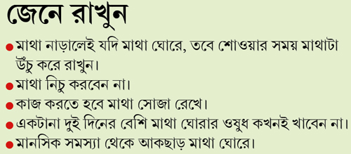 উ: মাথা ঘোরার ওষুধ খাওয়ার দরকার নেই। খেলেও এক-দুই দিন। তার বেশি নয়।