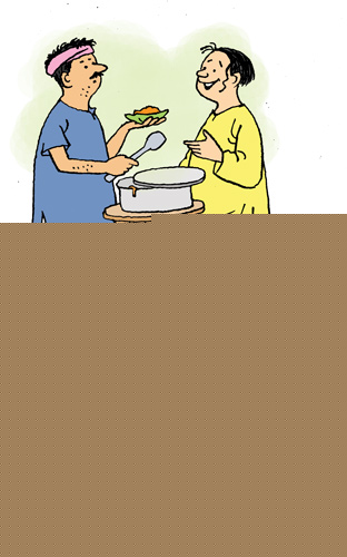 ‘‘আরেকটা তুমি খাবে। কোনও দিন নিজের ঘুগনি খেয়ে দেখেছ? আজ খাও। আমি খাওয়াব।’’