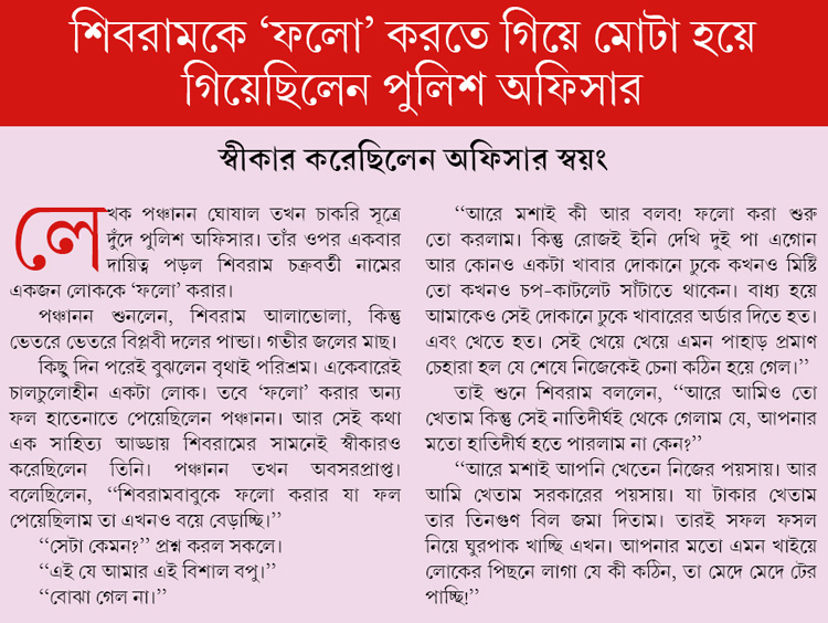 সুনীল সদলবলে ছুটলেন। গিয়ে দেখেন, সিল্কের পাঞ্জাবি আর ধুতি পরে শিবরাম টানটান শুয়ে রয়েছেন ফুটপাতে।