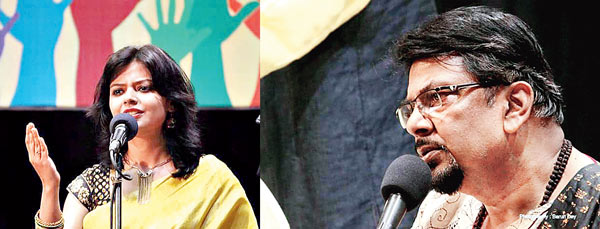 আমার পৃথিবী সন্ত্রাস মোছে...’ শিরোনামে রবীন্দ্রসদনে অনুষ্ঠিত হল কবিতা কোলাজের অনুষ্ঠান। ভাবনায় এবং ভাষ্যে ছিলেন সতীনাথ মুখোপাধ্যায়। গানে পল্লব কীর্তনীয়া এবং শান্তনু রায়চৌধুরী। পাঠে ছিলেন বিপ্লব চক্রবর্তী এবং মুনমুন মুখোপাধ্যায়। তাঁদের নির্বাচনে ছিল রবীন্দ্রনাথ, সুকান্ত, সুনীল থেকে ভবানীপ্রসাদ মজুমদার প্রমুখের কবিতা। সন্ত্রাসের আবহই হোক কিংবা যে কোনও প্রতিকূলতা, ভালবাসাই পারে তা থেকে উত্তরণের পথ দেখাতে। সেই সত্যই যেন আরও একবার উঠে এল এ দিনের অনুষ্ঠানে। উল্লেখের দাবি রাখে মুনমুন মুখোপাধ্যায়ের পরিণত কণ্ঠে ‘ভালবাসি ভালবাসি’ কবিতাটি। প্রশংসার দাবি রাখে বিপ্লব চট্টোপাধ্যায়ের কণ্ঠে ‘এত লাশ রাখব কোথায়’। আয়োজক সংজ্ঞা। পিয়ালী দাস