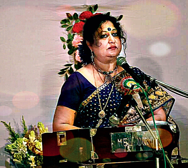 একক গানের আসরে রাজশ্রী ভট্টাচার্যের তিনটি গানই ছিল পূজা পর্যায়ের। তাঁর গলার মধুর গাম্ভীর্য রবীন্দ্রনাথের যে কোনও গানের সঙ্গে বেশ খাপ খেয়ে যায়। তার প্রমাণ ‘ও অকূলের কূল’ গানটি। ‘আমার মাঝে’ গানটি শোনাও ছিল এক স্বতন্ত্র অভিজ্ঞতা। শ্রীনন্দা মুখোপাধ্যায়ের গানও অনেক দিন পরে শোনা গেল। সত্যকাম সেন ‘তুমি যে সুরের আগুন’ দিয়ে শুরু করলেন ভালই। দ্বিতীয় গান ‘যারা কথা দিয়ে’ লয় নির্বাচন সঠিক ছিল না। দেবাশিস রায়চৌধুরী ও রোহিণী রায়চৌধুরী একসঙ্গে সঙ্গীত পরিবেশন করলেন। দেবাশিস এর গায়নে সহজিয়া ভাবটি রয়েছে বলে ভাল লাগে ‘জগতে আনন্দযজ্ঞে আমার নিমন্ত্রণ’ গানটি। রোহিণীর গায়নে আনন্দ আছে কিন্তু ভীষণ উচু স্কেলে গান করায় ‘আমি চঞ্চল হে’র তারসপ্তকে কিছুটা চিৎকৃত বলে মনে হয়। অনাবশ্যক কথা বলে সময় অতিবাহিত করলেন বাংলাদেশের বাচিক শিল্পী বিধানচন্দ্র পাল। উচ্চারণ পরিষ্কার হলেও অকারণ আবেগে ভেসে যান।