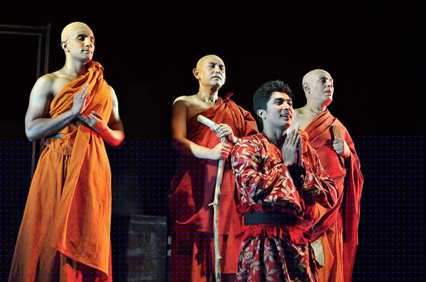 অতীতে বৌদ্ধ ধর্ম ও সংস্কৃতির নিদারুণ দুঃসময়ে নালন্দা বিশ্ববিদ্যালয় লুঠ ও ধ্বংস করে তুর্কী ফৌজ। বহুরূপীর নতুন নাটক ‘কথা নালন্দা’র (রচনা: কাজল চক্রবর্তী) নাটকীয় কাহিনির কেন্দ্রে এই ধ্বংসলীলার নায়ক বখতিয়ার খিলজি। বৌদ্ধবিহারের ধনসম্পত্তি ছাড়া লুটের লক্ষ্য ছিল বৌদ্ধবিহারে আশ্রিতা এক ইহুদী নারী যাকে বৌদ্ধ সন্ন্যাসীরা জীবন দিয়ে রক্ষা করার চেষ্টা করেছিলেন। এমন কাহিনির যে নাটকীয়তা তার পূর্ণ সদ্ব্যবহার করেছেন পরিচালক দেবেশ রায়চৌধুরী। আবার নিষ্ঠুর অত্যাচারী নারীলোলুপ নায়ক বখতিয়ারের ভূমিকায় তাঁর মঞ্চ-কাঁপানো অভিনয় প্রযোজনার অন্যতম আকর্ষণ। কিন্তু বিধর্মী বহিঃশত্রুর আক্রমণে নালন্দা ধুলিসাৎ হল এমন ঘটনা যতই আকর্ষণীয় হোক এই নাটকের মূল বিষয় বৌদ্ধ ধর্ম ও সংস্কৃতির অবক্ষয়ী অন্তর্দ্বন্দ্ব। সেই দ্বন্দ্ব বিধর্মী হিংসার সঙ্গে বৌদ্ধ অহিংসার নয়, কিন্তু তার চেয়েও বিপর্যয়ী। মূল বৌদ্ধ আদর্শ আক্রান্ত সদ্যোদ্ভূত তান্ত্রিক বৌদ্ধদের বিকৃত আচার-আচরণে। শক্তি-সাধনার নামে নারী-আসক্ত এই বৌদ্ধরা গ্রামের বালিকাকে ছিনিয়ে নেওয়ার চেষ্টা করায় গ্রামবাসী সংঘের বিরুদ্ধে বিক্ষোভ জানায়। নাটকের শুরুতেই আচার্য বসুসঙ্গ (সুমন মুখোপাধ্যায়) ও সংঘাধ্যক্ষ শিরভদ্রের (প্রবাল মুখোপাধ্যায়) সঙ্গে তান্ত্রিক বৌদ্ধ আচার্য বিকৃতিদেবের (মনোজ গঙ্গোপাধ্যায়) এই আদর্শগত তর্ক-দ্বন্দ্বে নাটকীয় টেনশনের সূচনা হয়। উদ্বেগক্লিষ্ট সনাতনপন্থীদের সৌম্য ব্যক্তিত্বের পাশে খলনায়ক সংস্কারবাদী তান্ত্রিক ভ্রষ্টাচারীর ধৃষ্টতায় সংঘ ও বিশ্ববিদ্যালয়ের সঙ্কট আর নালন্দার আদর্শগত বিপর্যয়ের অনিবার্য প্রতীকী পরিণতি।