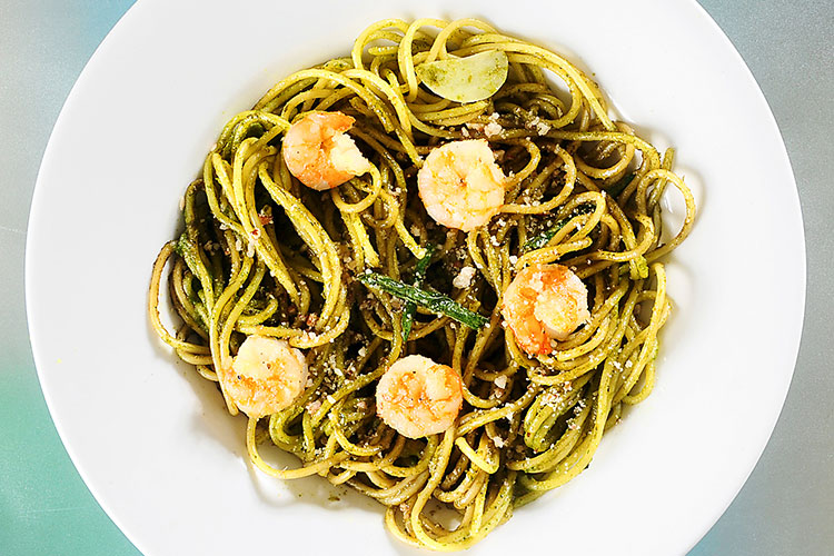 পেস্তো স্প্যাগেটি উইথ শ্রিম্প