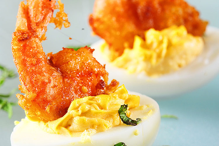শ্রিম্প টেম্পুরা অ্যান্ড ক্লাসিক ডেভিলড এগ বাইটস