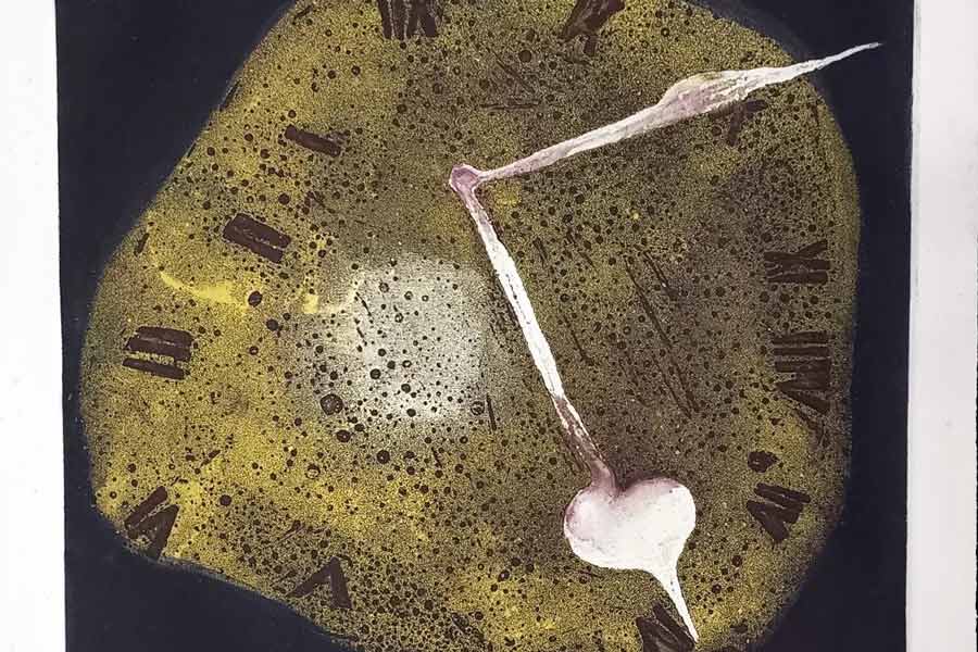 ছাপাই ছবি এক অতীব প্রাচীন মাধ্যম। সেই প্রাগৈতিহাসিক যুগ থেকে মানুষ তার নিজের হাতের ছাপ দিয়ে হয়তো বা এই যাত্রার সূচনা করেছিল। পরে বহু রকমের পরীক্ষানিরীক্ষার মাধ্যমে প্রিন্টমেকিং বিষয়টি এক গুরুত্বপূর্ণ মাত্রা পায় ও নানা শাখাপ্রশাখায় বিস্তার লাভ করে— যেমন উডকাট, এনগ্রেভিং, লিথোগ্রাফি, এচিং, ইন্টাগ্লিয়ো, ড্রাই পয়েন্ট, লিনোকাট ইত্যাদি। সনাতনী এই সব মাধ্যমের সঙ্গে আধুনিক প্রযুক্তিকরণের সংমিশ্রণে জন্ম নেয় স্ক্রিনপ্রিন্টিং, শিনকোল ইত্যাদি। তবে এই প্রদর্শনীতে মূলত ইন্টাগ্লিয়ো মাধ্যমের কাজই বেশি দেখা যায়। আলোচনার সুবিধার্থে সংক্ষেপে জেনে নেওয়া যাক যে, রিলিফ প্রিন্টমেকিং ও ইন্টাগ্লিয়ো প্রিন্টমেকিংয়ের মধ্যে পার্থক্য ঠিক কী রকম। রিলিফ প্রিন্টের ধাতুর পাতটি খোদাই করা হয় এবং ইন্টাগ্লিয়ো প্রিন্টে আগে ধাতুর পাতে রেখাগুলি চেরা বা কাটা হয়, পরে কালির প্রলেপ লাগিয়ে সেই ইঙ্কড ইমেজটি কাগজে স্থানান্তরিত করা হয়। আধুনিক কালে ব্যাঙ্ক নোট, পোস্টেজ স্ট্যাম্প, পাসপোর্ট ইত্যাদির ক্ষেত্রে এই মাধ্যমব্যবহার করা হয়। এই মাধ্যমে কাজ করার জন্য ব্যুরিন অথবা গ্রেভার ব্যবহার করা হয়। সুতরাং শিল্পীকে অত্যন্ত নিশ্চিত ও সুদৃঢ় ভাবে ধাতুপাতের উপরে রেখাগুলির বিন্যাস ঘটাতে হয়।