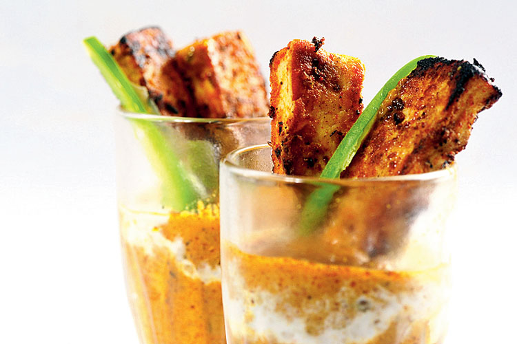পদ্ধতি: পনির বড় বড় টুকরো করে অল্প আদা-রসুন বাটা, টক দই, তন্দুরি মশলা, নুন ও চিনি দিয়ে আধ ঘণ্টা ম্যারিনেট করে রাখুন। প্যানে ১ চা চামচ সাদা তেল গরম করে পনির দিয়ে ঢাকা দিতে হবে। ১ মিনিট বাদে ঢাকনা খুলে পনির নামিয়ে গ্যাসের আগুনে সেঁকে নিন। ক্যাপসিকাম ও পেঁয়াজ স্লাইস করে কড়াইয়ে ভেজে নিন। এ বার কড়াইয়ে পরিমাণ মতো তেল ও ঘি দিয়ে আদা-রসুন বাটা দিন। তার পরে পেঁয়াজ বাটা ও টম্যাটো বাটা দিয়ে কষতে হবে। মশলা থেকে তেল ছাড়তে শুরু করলে ধনে গুঁড়ো, জিরে গুঁড়ো, তন্দুরি মশলা, কাশ্মীরি লঙ্কা গুঁড়ো ও ম্যারিনেটের মশলা দিয়ে আবার কষান। মিনিট পাঁচেক রান্না করে কাজু বাটা, ক্ষীর ও দই মিশিয়ে দিন। ২ কাপ জল দিতে হবে। গ্রেভি ফুটে উঠলে পনির কাবাবগুলো একে একে দিয়ে দিন। রান্না হয়ে গেলে উপর থেকে ভাজা পেঁয়াজ ও ক্যাপসিকাম ছড়িয়ে দিন। এ বার অন্য আভেনের আগুনে কয়লার টুকরো গরম করুন। পনিরের গ্রেভির মধ্যে একটি বাটি বসিয়ে তার মধ্যে গরম কয়লা রাখুন। কয়লার উপরে ঘি ছড়িয়ে পনিরের পাত্রটি ঢাকা দিয়ে দিন। পরিবেশনের আগে ঢাকনা খুলবেন।