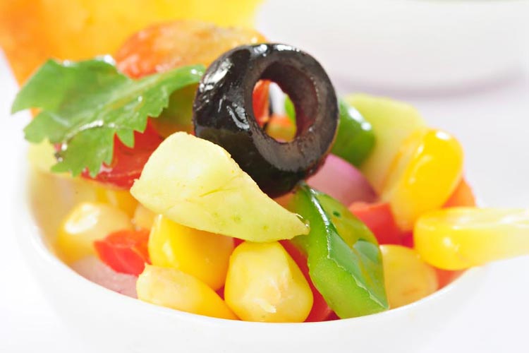 উপকরণ: ভুট্টার দানা ১ কাপ, পেঁয়াজ কুচি ২ টেবিল চামচ, স্প্রিং অনিয়ন ২ টেবিল চামচ, লাল বেলপেপার অর্ধেক, কাঁচা আম ১টি, সেলেরি আধ টেবিল চামচ, চেরি টম্যাটো ৬টি, আনারস কুচি ১ টেবিল চামচ, পার্সলে কুচি ১ চা চামচ, ধনেপাতা কুচি ১ চা চামচ, বেসিল পাতা ৪টি, অলিভ ৭-৮টি, পাতিলেবুর রস ২ চা চামচ, অলিভ অয়েল ১ টেবিল চামচ, ব্ল্যাক সল্ট আধ চা চামচ, সাদা মরিচ গুঁড়ো আধ চা চামচ, নাচোস অল্প।
