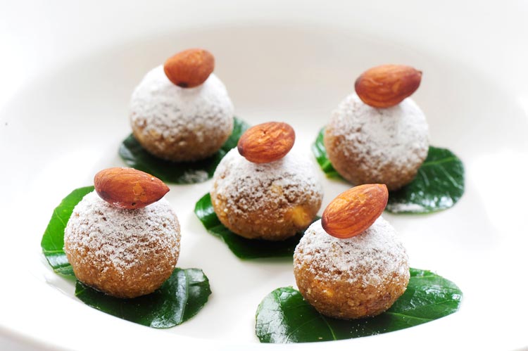 উপকরণ: ওট্স ১ কাপ (গুঁড়ো), নারকেল কোরা আধ কাপ, খেজুর ১২টি, ঘি আধ কাপ, এলাচ গুঁড়ো আধ চা চামচ, আখের গু়ড় আধ কাপ, কাজু-আমন্ড-পেস্তা-কিশমিশ কুচি ১ কাপ, খোয়া ক্ষীর ১/৪ কাপ।