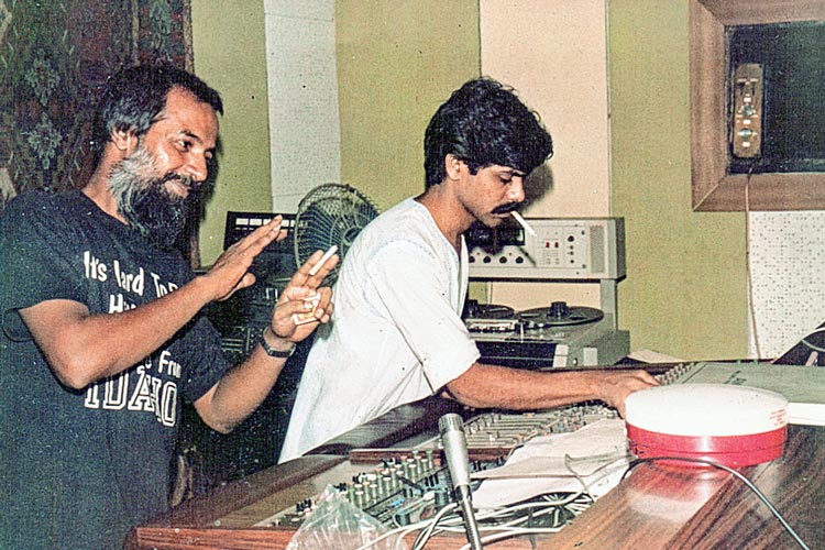 রেকর্ডিংয়ে সলিল চৌধুরীর ছেলের সঙ্গে, ১৯৮৭ সালে