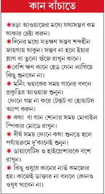উ: ঘরে থাকার সময় অন্তত বেশ কয়েক ঘণ্টা ইয়ার প্লাগ লাগিয়ে কানকে একটু বিশ্রাম দিন।