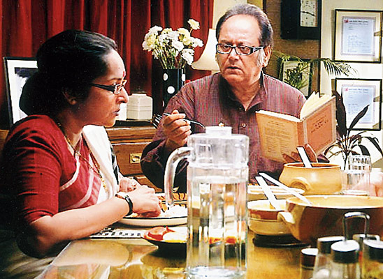 —অস্বীকার করব না, ওর সঙ্গে আমার ঘনিষ্ঠ সম্পর্ক ছিল। কাজ করে সুখী হয়েইছি; কারণ ওর সঙ্গে তুলনায় আমার বাকি সব নায়িকাকে গ্রাম্য মনে হয়েছে। সন্ধ্যা রায়, সুমিত্রা… সেখানে ওর অ্যাক্টিঙে একটা শহুরে ছাপ, মেজাজ। কিন্তু সম্পর্কটা একটা বিশ্রী ঝগড়া দিয়ে সুর কেটে গেল। আমরা আমেরিকায় নাটক নিয়ে গিয়েছিলাম। হঠাৎ এক শহরে নাটক নিয়ে গিয়ে দেখি, অপর্ণা মিসিং। সে তখন অন্য শহরে ঘুরে বেড়াচ্ছে নতুন বন্ধু কল্যাণকে নিয়ে। পরে যাকে বিয়েও করল। শেষ রক্ষা অবশ্য হল, ওরা এসে পৌঁছল শেষে। আমি সে দিন মেজাজ হারিয়ে বেদম চেঁচিয়েছিলাম। বলতে গেলে ওখানেই সম্পর্কের ইতি। এখন অবশ্য একটা পোশাকি সৌজন্য, কেমন আছ-ভাল-আছর সম্পর্ক। ঠিক আছে, যে যার মতো ভাল থাকলেই ভাল।’’