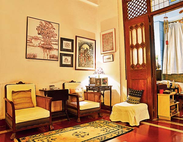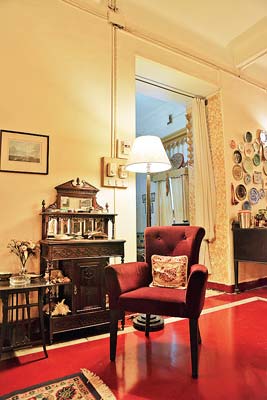 ব্রিটিশ স্থাপত্যের নিদর্শন বহন করা পাঁচতলা কোলাপসিব্ল গেট ঠেলে ঢুকতে-ঢুকতে তিনি বললেন, আমাদের বাড়িতে এসি নেই। চল্লিশ ডিগ্রি পার করা গরম সাবেক স্থাপত্যের মুনশিয়ানাকে কাবু করতে পারেনি। এ বাড়ির গ্রাউন্ডফ্লোর তাঁদের। ফ্ল্যাটে ঢোকার মুখেই রয়েছে লিভার টানা লিফ্ট, গত শতকের গরিমা, এ বাড়িতে বহাল তবিয়তে চলমান। ভিতরে পা দিতেই টেম্পারেচারের তফাতটা বুঝলাম। কড়ি-বরগার সিলিং, তাতে ঝুলন্ত ফ্যান, লাল মেঝে, দেরাজ, ড্রেসিংটেব্ল, চেয়ার, সাবেকি আরামকেদারা, ল্যাম্পশেড। পুরো বাড়িতেই শতাব্দী-পুরনো চার্ম তুলোয় মুড়ে রাখা।