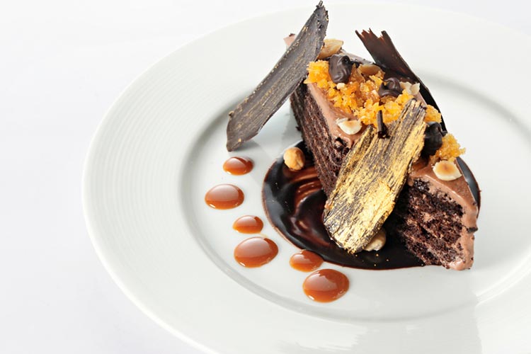 উপকরণ: চকলেট স্পঞ্জ ৯০ গ্রাম, হেজ়েল নাট মুস ২০ গ্রাম, চিনির সিরাপ ১৫ গ্রাম, রোস্টেড হেজ়েল নাট ৬০ গ্রাম, এপ্রিকট ৩০ গ্রাম, চকলেট সস ৪৫ মিলি, চকলেট শেভ ৪৫ মিলি, গোল্ড ডাস্ট ৪৫ মিলি, গ্রানোলা বার ৩০ গ্রাম।