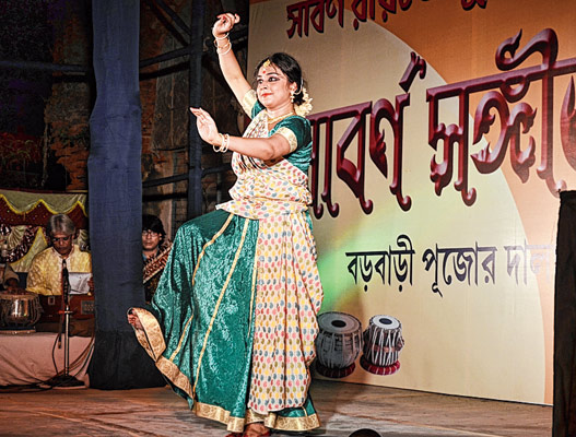 দ্বিতীয় দিনের অনুষ্ঠান শুরু হয় রাজ্যসঙ্গীত অ্যাকাডেমির দুই সদস্য অনির্বাণ দাস ও দীপ্তম সিংহ বিশ্বাসের কণ্ঠসঙ্গীতের মাধ্যমে। মালবিকা মিত্রের ছাত্রী তবস্মি পাল মজুমদারের কত্থক নাচ ছিল পরবর্তী নিবেদন। জয়পুর ও লখনউ ঘরানার শিল্পীর নিবেদনে ছিল প্রথাগত নৃত্যপদ। সঙ্গে ছিল অভিনয় আশ্রিত কিছু নিবেদন। শিল্পীর পদবিস্তার সুচারু ও উপস্থাপনাও উজ্জ্বল। মন্দিরা লাহিড়ী বিলম্বিত তিন ও দ্রুত একতালে মারু বেহাগ রাগে খেয়াল গাইলেন। তাঁর কণ্ঠে জোয়ারি আবেগ, গলা সুরসমৃদ্ধও। তবে মন্দ্র সপ্তকে স্বরসঞ্চার খুব স্পষ্ট নয়। ফলে বিলম্বিত খেয়ালের রাগবিস্তারে একটা সীমাবদ্ধতা থেকেই যায়। খুব একটা বৈচিত্র না থাকলেও সরগম প্রয়োগে নৈপুণ্য ছিল। তবে ভজন ও দাদরা-তে তিনি একটা আবেদন রাখতে পেরেছিলেন। সুর ও ছন্দে হিল্লোল তুললেন সন্ধ্যার শেষ শিল্পী হারমোনিয়াম বাদক সনাতন গোস্বামী। তিনি নির্বাচন করেছিলেন রাগ গোরখকল্যাণ। তবলায় তাঁকে সহযোগিতা করেন শুভজিৎ গুহ। দু’দিনের অনুষ্ঠানে সঞ্চালনায় ছিলেন কৌশিক সেনগুপ্ত ও দীপান্বিতা রায় চৌধুরী।