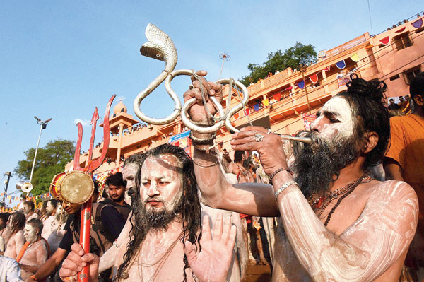 হরিদ্বারে শাহি স্নান থাকে দুপুরে, সকাল থেকে নাগা সাধুদের জলুস আসতে থাকে হর-কি-পৌড়ির ঘাটে।