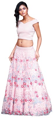 দ্বিতীয় পোশাকটিতে অর্থাৎ সফ্ট প্যাস্টেল স্কার্টটিতে সিকুইন, এমবেলিশমেন্ট ও হ্যান্ডকাট অ্যাপ্লিকের ডিটেলিং থেকে চোখ ফেরানো দায়!
