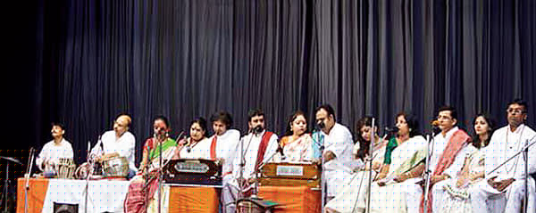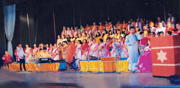 সম্প্রতি স্টার থিয়েটারে কল্যাণ গুহর পরিচালনায় অনুষ্ঠিত হল শতকণ্ঠে রবীন্দ্রগান। ‘বিচিত্র আনন্দ হে কবি’ শীর্ষক এই অনুষ্ঠানের উদ্বোধন করল ‘বাগেশ্রী’ সংস্থার শিল্পীরা।