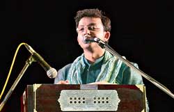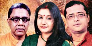 সম্প্রতি গোলপার্ক রামকৃষ্ণ মিশন ইনস্টিটিউট অব কালচার-এ শোনা গেল স্বামী সুপর্ণানন্দ মহারাজের ‘রামকৃষ্ণ-কথামৃত’ পাঠ। এই আবহেই উপস্থাপিত হল দেবজিৎ বন্দ্যোপাধ্যায়ের রচনা ও নির্মাণে অ্যাকাডেমি থিয়েটারের ‘বিবেক-বীণায়’। বিপ্লব বন্দ্যোপাধ্যায়ের ভাষ্য ও দেবজিতের একক গায়নে পরিবেশিত হল স্বামী বিবেকানন্দের নাট্যসঙ্গীত। ‘খণ্ডন-ভব-বন্ধন’ দিয়ে শুরু। ‘আয় গো আয়’ গানে ভিন্ন স্বাদ নিয়ে এলেন শিল্পী। বঙ্কিমচন্দ্রের ‘মৃণালিনী’র গান ‘সাধের তরণী’ অপূর্ব। তেমনই গিরিশচন্দ্রের ‘জুড়াইতে চাই’তে যেন বৈরাগ্যের সাধন মিলন। যুগল গানের পরিবেশনায় দেবজিত মেলে ধরলেন সমতার মধ্যেও দুই গীতিকারের আপন বৈশিষ্ট্য। ইতি টানলেন স্বামীজির কাব্যসূত্রে দ্বিজেন্দ্রলালের গানের সমতায় ‘ভীষ্ম’ নাটকের ‘নীলাকাশের অসীম’-র সুর ও কাব্যের মূর্ছনায়। বাঁশিতে সৌম্যজ্যোতি ঘোষ, তবলায় প্রীতম সাহা এবং কি-বোর্ডে দেবাশিস সাহা।