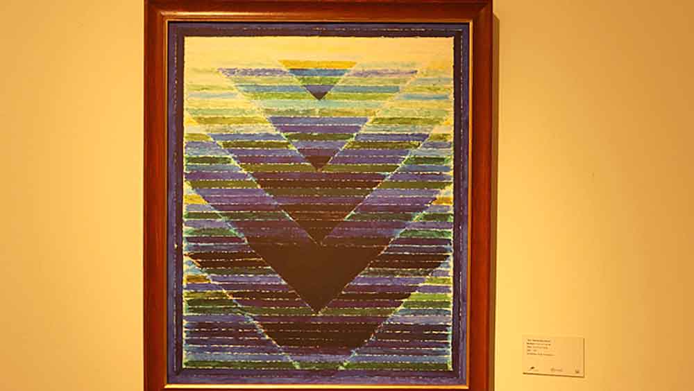 প্রদর্শনীর চিত্রকর্মগুলি ১৯৫৯ থেকে ২০১৬ সালের মধ্যকার। রাজার ছবিতে কালার, কালার-হারমনি, ফর্ম, ডিজ়াইন, এক্সপ্রেশন অব টোটালিটি, অ্যারেঞ্জমেন্ট, অ্যাবস্ট্রাকশন, কোয়ালিটি অব ডায়মেনশনাল ট্রিটমেন্ট, জিয়োমেট্রি, কালার ব্যালান্স ও এক্সপেরিমেন্টাল ভেরিয়েশন ইত্যাদি প্রতিটি ছবির প্রাণ। আলাদাভাবে প্রত্যক্ষ করলে বোঝা যায়, কোন ধরনের বিমূর্ততা তাঁর এক্সপ্রেশনিস্টিক স্টাইল থেকে ধীরে ধীরে একটা নির্দিষ্ট ভাবনায় পরিচালিত হচ্ছে। রূপের সংকেত থেকে প্রতীকী তাৎপর্য রূপক হিসেবে প্রতিভাত হয়েও কতটা সাংকেতিক আবহে মিশে যাচ্ছে, রাজা তাঁর কাজগুলিতে নির্দিষ্টভাবে তা-ও বুঝিয়েছেন। তাঁর ওই বাস্তবসম্মত এক পরিমিত অ্যারেঞ্জমেন্টও যেন তখন মনে হয় কম্পোজ়িশনের ক্ষেত্রে তা কতটা সায়েন্টিফিক। শিল্পী নিজেকে সংযত রেখে, ভাঙাগড়ার খেলায় যে-সব ‘পয়েন্ট অফ ইন্টারেস্ট’-এর স্থানগুলিকে দর্শকের চোখে নিবিষ্ট করেছেন, সেখানেও কাব্যময় এক আধুনিকতাকে প্রত্যক্ষ করা যায়। যা তাঁর ভালবাসাময় প্রশ্রয়। সে তাঁর কাগজে করা সেরিগ্রাফগুলিতেই হোক বা চিত্রিত ক্যানভাসেই হোক।