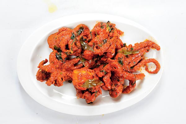 উপকরণ: স্কুইড ৫০০ গ্রাম, কর্নফ্লাওয়ার ৫০ গ্রাম, জোয়ান ১ টেব্ল চামচ, আমচুর পাউডার ১ চা-চামচ, কারিপাতা কুচি ১ চিমটে, আদা বাটা ১ চিমটে, নুন স্বাদমতো, সানফ্লাওয়ার বা নারকেল তেল ২৫০ মিলি।