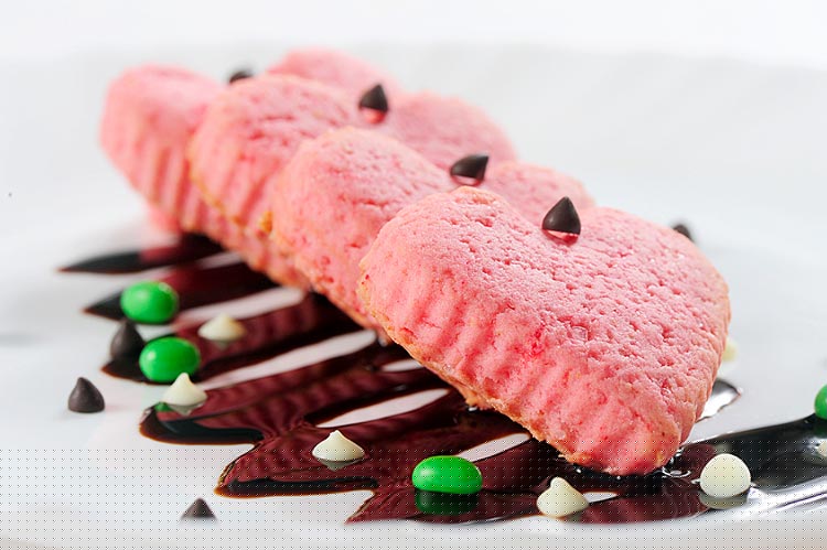 উপকরণ: ময়দা ১ কাপ, বেকিং সোডা ১ টেব্ল চামচ, চিনি আধ কাপ, মাখন আধ কাপ, নুন এক চিমটি, ডিম ২টি, কোকো পাউডার ২ টেব্ল চামচ, ভ্যানিলা এসেন্স আধ চা চামচ, হোয়াইট চকলেট ১ কাপ, স্ট্রবেরি সিরাপ কয়েক চামচ, ফ্রেশ ক্রিম আধ কাপ, চকলেট সিরাপ ১ টেব্ল চামচ।