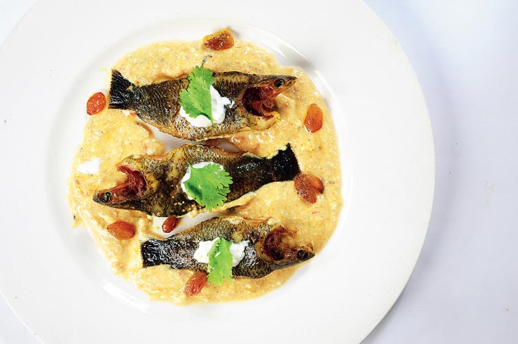 উপকরণ: কই মাছ ৪টি, হলুদ গুঁড়ো এক চিমটি, জিরে গুঁড়ো ১ চা চামচ, লঙ্কা গুঁড়ো ১ চা চামচ, আদা বাটা আধ চা চামচ, গোলমরিচ গুঁড়ো আধ চা চামচ, টম্যাটো পিউরি ২ টেব্ল চামচ, টক দই আধ কাপ, নারকেলের দুধ আধ কাপ, ছোট এলাচ ২-৩টি, লবঙ্গ ২টি, দারচিনি ১ টুকরো, গরম মশলা গুঁড়ো ১ চা চামচ, চেরা কাঁচা লঙ্কা ৪-৫টি, ধনেপাতা কুচি সামান্য, সরষের তেল প্রয়োজন মতো, ঘি, ১ টেব্ল চামচ, তেজপাতা ১টি, শুকনো লঙ্কা ২টি, শা-জিরে আধ চা চামচ, পেঁয়াজ ১টি, কিশমিশ কয়েকটি, নুন স্বাদ মতো, চিনি স্বাদ মতো।