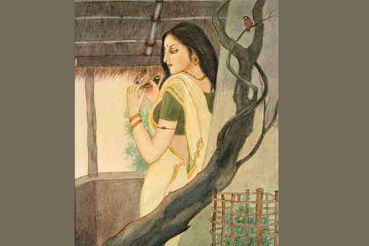 আর এক শিল্পী শুধু মাত্র কলম ও কালিতেই কোথাও কিছুটা হালকা রং মিশিয়ে, বড় বাস্তব গ্রাম্য জীবনের কিছু নিসর্গের মুহূর্তকে তুলে এনেছেন পটে, তিনি শ্যামাপদ বন্দ্যোপাধ্যায়। যে জায়গায় তিনি একটু আশাহত করেছেন তা হল, নিসর্গ-নৈঃশব্দ্যের মাঝে হঠাৎ কেন যে অমন দুর্বল ড্রয়িংয়ে মানুষ কিংবা ইজ়েল আঁকতে গেলেন? ছবির মজা ওখানে শুধু নষ্টই হয়নি, হঠাৎ সচিত্রকরণের দিকে বাঁক নিয়েছে। বিন্দু বিন্দু দিয়ে সাদা লাইন বার করার বিভ্রম, কোথাও প্রয়োজনে গাঢ় কালো বা ঘনত্বের ব্যবহার, সাদা ছেড়ে দূরত্ব বোঝানোর আশ্চর্য কায়দা... সূক্ষ্মতর পেন-ইংকের এই মোহময় বাস্তবতায় তিনি আকাশ, ছোট্ট ব্রিজ, লাঙল চাষ, গাছপালা-বাঁশঝাড়ের অপূর্ব সমাহার, বিস্তীর্ণ জল, নৌকো, ঢাল বেয়ে নামা আলো-আঁধারির রহস্য নিয়ে প্রকৃতির নির্জনতাকে বাঙ্ময় করেছেন। যদিও কোথাও একটু ভারসাম্যের অভাব হয়েছে।