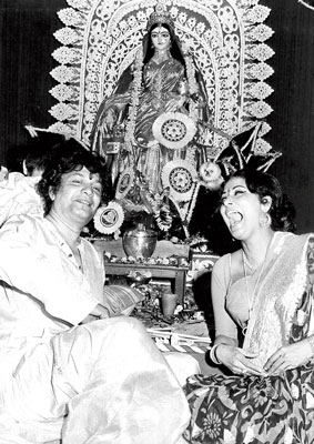 ময়রা স্ট্রিটে সরস্বতী পুজোয় সুপ্রিয়াদেবীর পাশে