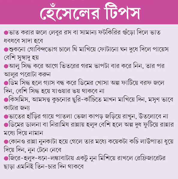 কারণ, কম সময়ে ভাল রান্না করতে হবে, একাধিক পদ পাতে বেড়ে দিতে হবে। আর ওই কঠিন পরিস্থিতির মোকাবিলা করতে গিয়েই দক্ষতা ও নৈপুণ্যের চূড়ান্ত পরিচয় দিতেন সেকালের বঙ্গনারী।