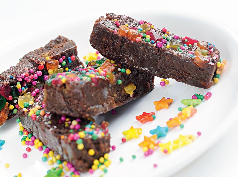 উপকরণ: কনডেন্সড মিল্ক ২০০ গ্রাম, কোকো পাউডার ৪ টেব্ল চামচ, মাখন ৫০ গ্রাম, জিঞ্জার বিস্কিট ১০০ গ্রাম, ক্যান্ডিড পিল আর স্প্রিঙ্কলার আধ কাপ।
