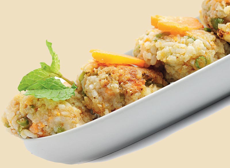 প্রণালী: একটি বাটিতে ভাত, সিদ্ধ আলু, বিন-ক্যাপসিকাম-গাজরের কুচি, আদা বাটা, নুন, জিরে গুঁড়ো, কাশ্মীরি লঙ্কা গুঁড়ো একসঙ্গে মেখে নিন। মশলামাখা ভাতের মণ্ড থেকে ছোট ছোট বলের আকারে কেটে গোল কাবাবের চেহারা দিন। ননস্টিক প্যানে মাখন আর অলিভ অয়েল গরম করে নিন। তাতে কাটলেট লাল করে ভাজুন। চাট মশলা ছড়িয়ে গরম গরম পরিবেশন করুন রাইস কাটলেট।