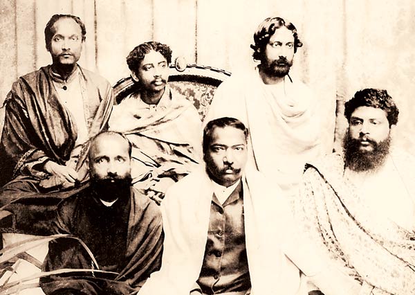 রবীন্দ্রনাথের সঙ্গে উপেন্দ্রকিশোর (প্রথম সারিতে ডান দিকে) ও অন্যরা ছবি: সৌজন্যে হিমানিশ গোস্বামী