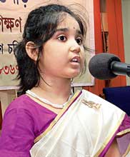 সম্প্রতি বাটানগর ‘আবৃত্তি নীড়’ আয়োজিত কথাঞ্জলির অনুষ্ঠানে শোনা গেল শিশুদের এক ঝাঁক কবিতা। সৈমন্তী, স্বস্তিক, স্বাত্ত্বিক, শুভেচ্ছা, সিক্তা, মেহলী শোনাল ‘কর্তা বাবুর’, ‘মেজাজ’, ‘একুশ’, ‘মৃত্যুঞ্জয়’, ‘নিঃস্বার্থ’, ‘খোকার উক্তি’। ছোট্ট সৃজা রায় চৌধুরীর ‘বাঘুর বুদ্ধি’ শ্রুতিমধুর।