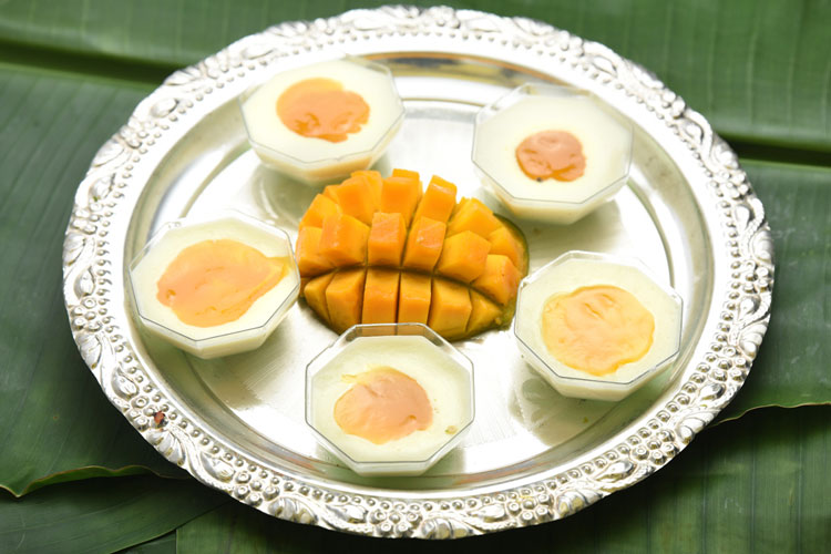 প্রণালী: কড়াইয়ে সন্দেশ ও ক্ষীর একসঙ্গে ভাল করে নাড়ুন। ঘন হলে নামিয়ে নিন। ১০০ গ্রাম থেকে তিনটি করে ছানার বল তৈরি করুন। অন্য পাত্রে চকলেট গলিয়ে নিন। ছানার বলের উপরে গলানো চকলেট ছড়িয়ে ফ্রিজে ঢোকান। ঠান্ডা হয়ে গেলে বার করে নিন। বাকি চকলেটের মধ্যে আমের এসেন্স মিশিয়ে নিন। মনোহরার উপরে আম-চকলেট নিজের ইচ্ছে মতো ছড়িয়ে পরিবেশন করুন।