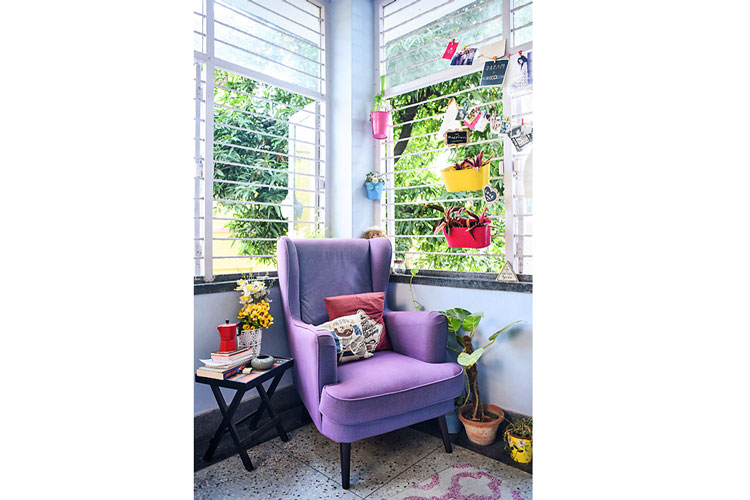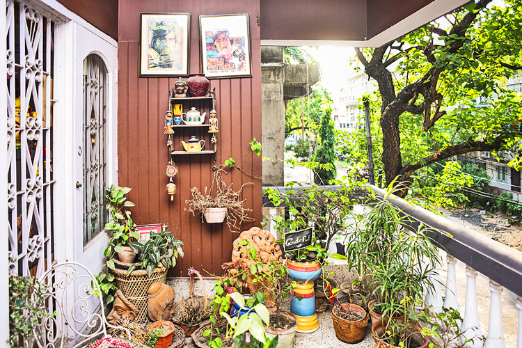 ড্রয়িংরুমের পাশেই রয়েছে ছোট্ট একটা ঘর। না কি বলব কুঠুরি? ভিতরে গেলে বোঝা যায়, জমিয়ে আড্ডা মারার জন্য ঘরটা দুর্দান্ত। এ বাড়ির ড্রয়িং রুমের দু’পাশের দু’টি বারান্দায় লুকিয়ে আছে তার প্রাণবায়ু। সেখানে ছোট বড় নানা গাছের মেলা।