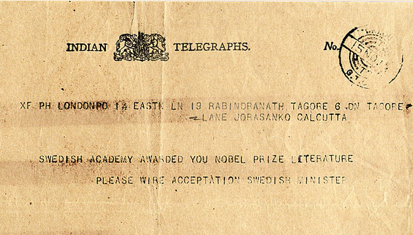 কিন্তু জামাই নগেন্দ্রর ওই টেলিগ্রাম নয়, সেদিন কবি তাঁর তিন সুহৃদের টেলিগ্রামে নিজের নোবেল প্রাপ্তির খবর প্রথম জেনেছিলেন!