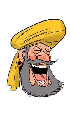 বীরবলকে দেখে আকবর উচ্চৈঃস্বরে হেসে উঠে খানিক ব্যঙ্গের সুরে বললেন, ‘‘এ কী বীরবল, তোমার এমন ভিখিরির দশা কবে হল!’’