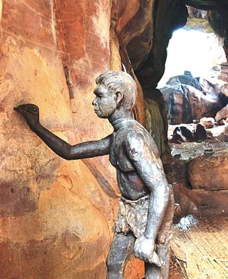 হাওড়া থেকে ভোপাল, সেখান থেকে গাড়িতে ভীমবেটকা। মধ্যপ্রদেশের রাইসিনা জেলায় ভীমবেটকা হল সভ্যতার আঁতুরঘর। তিরিশ-চল্লিশ হাজার বছরের পুরনো পাহাড়ঘেরা এই বনাঞ্চল। এখনও পর্যন্ত প্রায় আড়াইশোটি গুহা বা পাথরের খাঁজে থাকার মতো জায়গা পাওয়া গিয়েছে পুরো ভীমবেটকা চত্বর জুড়ে। তবে ইতিহাসের পাশাপাশি প্রকৃতির টানেও গিয়েছিলাম আমরা। রেললাইনের ধারে সরকারি মোটেল থেকে আলুর পরোটা, আচার, টক দই খেয়ে ঢুকলাম ভীমবেটকা। গাড়ি বহু দূরে রেখে পুরোটাই হেঁটে যেতে হয়। দু’দিকে কালচে খয়েরি পাহাড়, গাছ, পাথুরে রাস্তা দিয়ে বেশ খানিকটা হেঁটে চোখে পড়ল প্রথম গুহা।